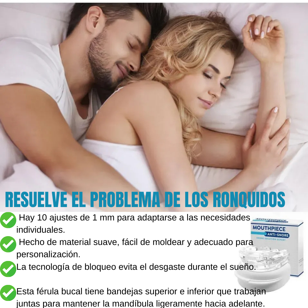 Este dispositivo de avance mandibular (DAM) está diseñado para adelantar suavemente la mandíbula inferior mientras duermes. Al hacerlo, abre y despeja las vías respiratorias que podrían estar obstruidas, reduciendo las vibraciones que causan el molesto sonido de los ronquidos.