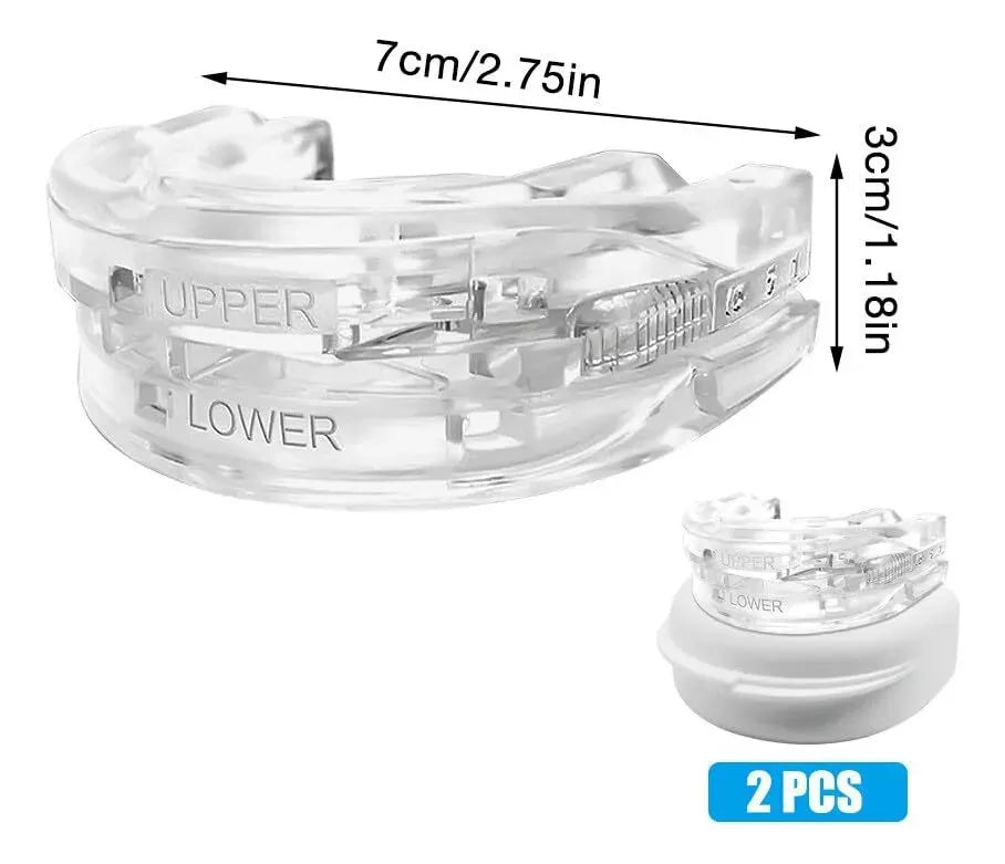 Por Q159, recibirás dos kits completos de Mouthpiece Anti-Snore. Cada kit incluye un dispositivo de avance mandibular con sus bandejas superior e inferior, y su respectivo estuche. Es la opción perfecta para compartir con tu pareja o tener un repuesto a mano.